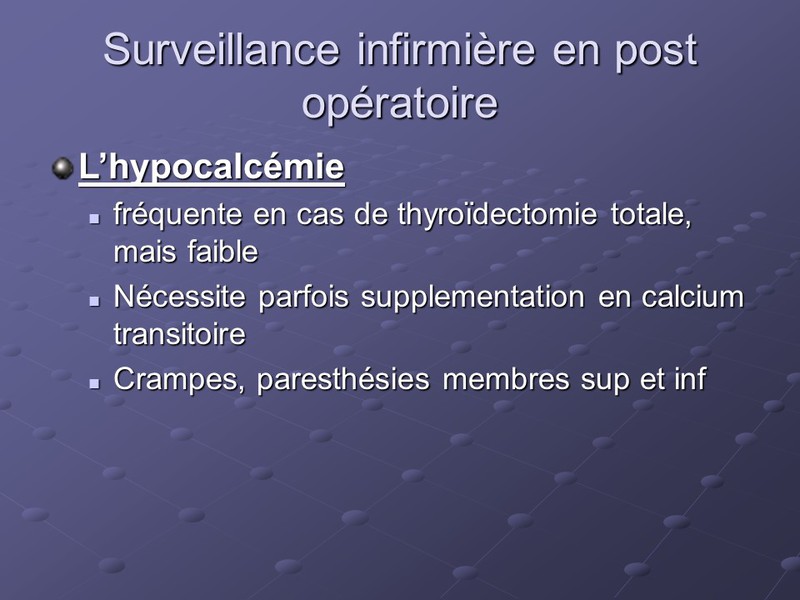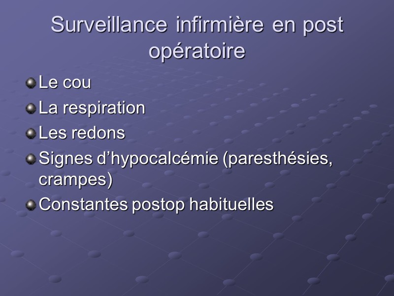 - Adénome parathyroïdien: il s'agit d'une parathyroïde produisant trop de parathormone de manière inadaptée entrainant une augmentation importante de la calcémie. Cette hypercalcémie est responsable de nombreuses complications, cardiaques ou rénales. Son exérèse permet une normalisation immédiate du taux de parathormone et une normalisation rapide de la calcémie.